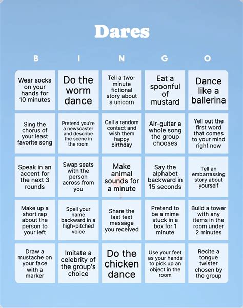 Bingo Dare Ideas. Instead of playing the traditional bingo game in which participants must be the first to. You could either make bingo cards with overused words in.