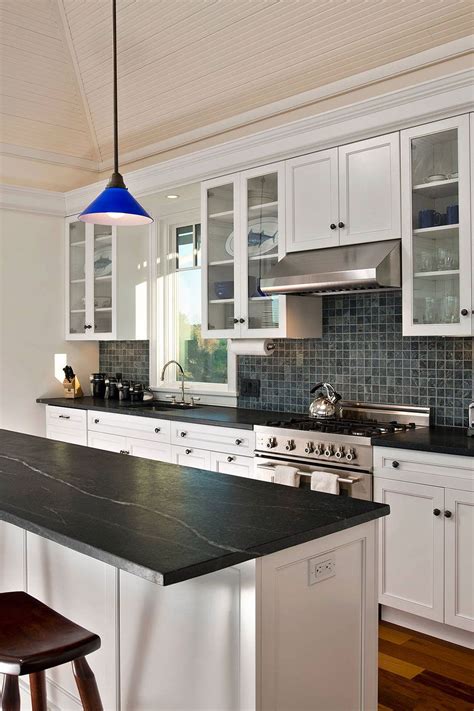 Transitional Kitchen Black Countertop And Backsplash blackcountertop