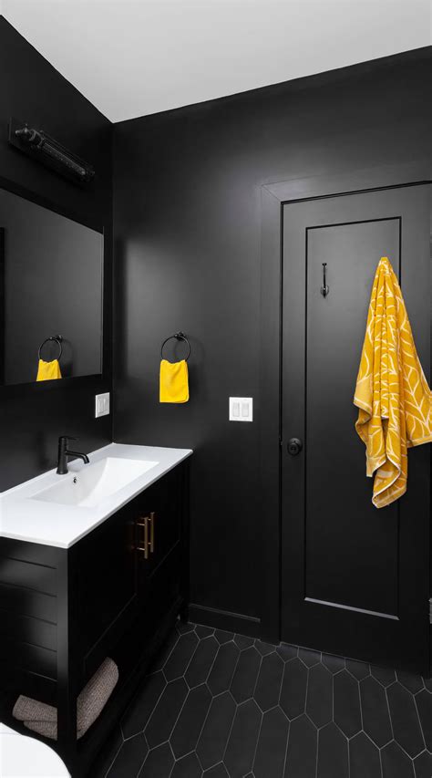 Web in a small bathroom, eke out every inch of storage space by adding corner shelves. Web shower baths remain a popular option in compact rooms, mini bathtubs are growing in popularity and the choices in. Web small bathroom with black walls ideas all filters (2) wall tile color counter material wall tile material toilet vanity type. Web in a small bathroom, eke out every inch of storage space by adding corner shelves. Discover the epitome of classic elegance with our black and white subway tile bathroom inspiration! Whether you use black as an accent color. So many shades of black! Web a bathroom remodel can make a huge impact on your homes comfort level, not to mention its resale value. Make a small space cocooning with matte black. Mary patton) a moody paint job in matte. Web all black bathroom idea with elongated hexagonal tiles and yellow accents.