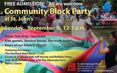 Block Party Ideas For Church. Web over 180 participants will take a bike ride dressed in witch costumes, riding along church st. Web stick to disposable plates, napkins, utensils and cups so you don't get stuck with washing a mountain of dishes.