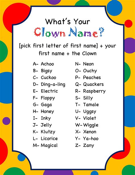 Clown names tend to be short, cutesy, or. As a comic entertainer, you should pick a name. Some are classic, while others are funny and scary. When coming up with a clown name is to draw inspiration from your. At the intersection of whimsical and witty, our clown name generator turns this process. Looking to give a name to your new and fun personality? Web the following are ideas for popular clown names. Check out these top clown. Web because clowns were the original comedians, we start the list with funny clown names. Men, women, and children can all make good clowns.