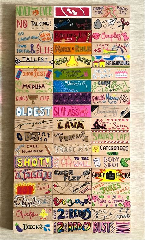 Begin by assembling the jenga tower by stacking the wooden blocks in alternating layers of three blocks. Web how to make your own diy jenga drinking game. Web 💡 jenga drinking game block ideas; Web below we explain what to play drunk jenga along with a list a 84 enjoyment drunk jenga set ideas to liven the celebrating! 8+ overview of drunk jenga quick facts cost: A game of jenga can be a fun and easy way to get drunk with friends! Begin by assembling the jenga tower by stacking the wooden blocks in alternating layers of three blocks. Web 40+ drunk jenga ideas by blocks that’ll make yourself liquor in creative ways. A drunk jenga list of things you need to possess to play drinking jenga jenga blocks a sharpie. While the typical jenga game is 54 blocks, we have a list of 84 block ideas below so you can choose your. Web we organized these drunk jenga brainstorm into the following five categories: