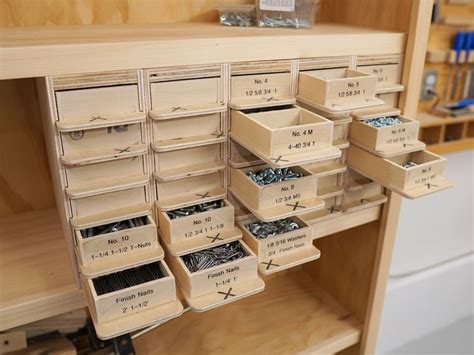 Fastener Storage Ideas. Web above my workbench, fasteners and small hardware bits are stored in clear plastic divider boxes with self. Web a relatively simple build that will make a huge difference in any shop's organization, this screw storage will hold 4.