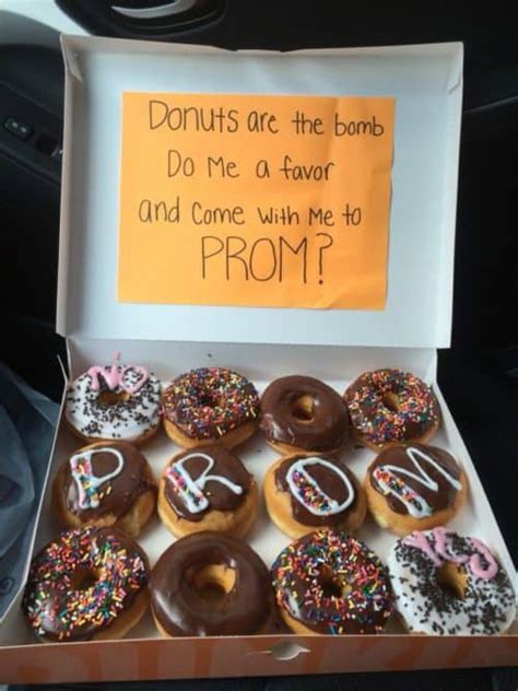 Promposal Ideas Donuts. The only thing sweeter than a bouquet of flowers? Web imagine their delight and excitement when they receive a big box of donuts with your answer to their.